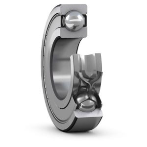 - بلبرینگ شیار عمیق (Deep Groove Ball Bearings): این نوع بلبرینگ پرکاربرد ترین بیرینگ مورد استفاده در صنعت است و توانایی تحمل بارهای شعاعی و مقدار کمی بارهای محوری را داراست، دلیل نامگذاری این بلبرینگ به خاطر وجود شیار با شعاع متناسب با شعاع ساچمهها در دو حلقه(رینگ) داخلی و خارجی برای هدایت ساچمهها میباشد.